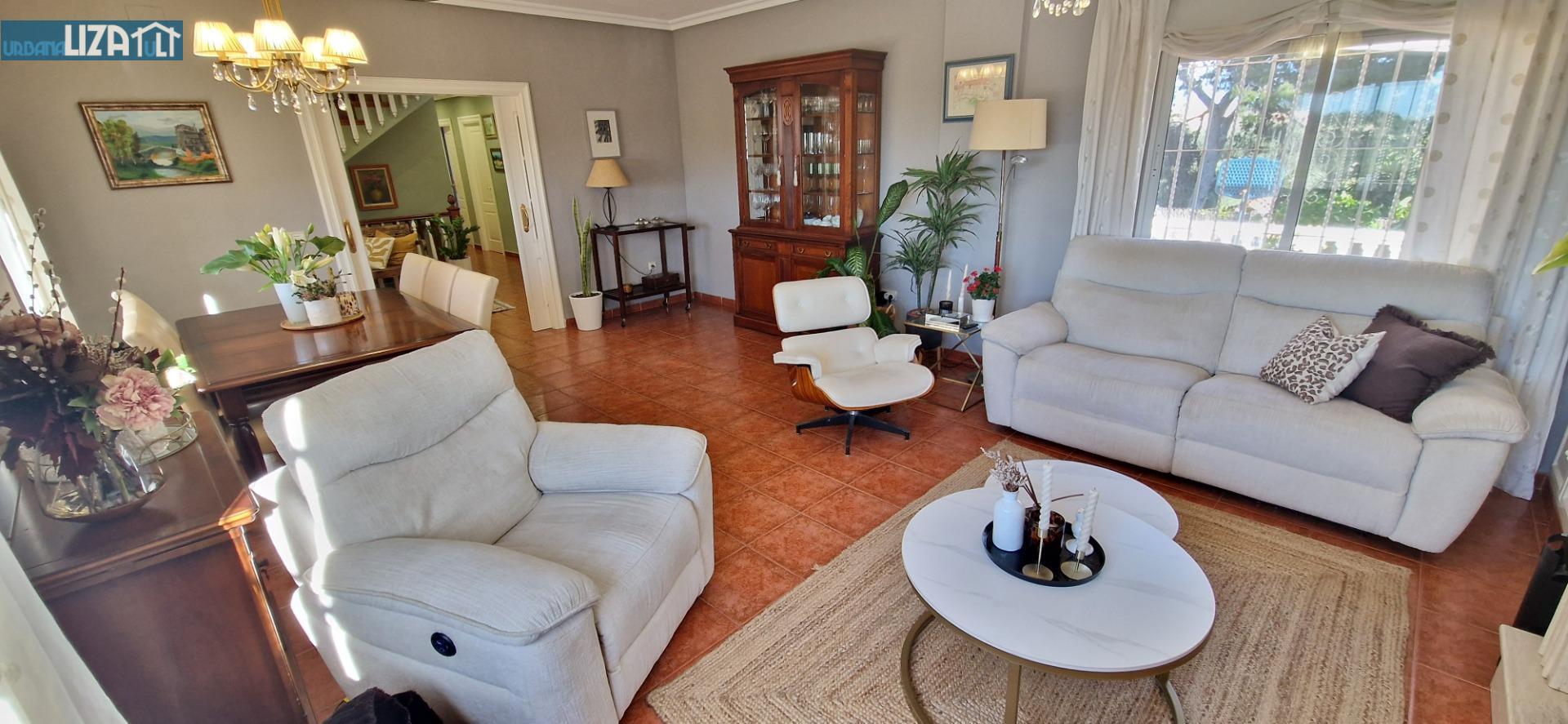 UL2V2265.- Urbana Liza se complace en presentar este espléndido chalet, una joya inmobiliaria que combina confort, elegancia y funcionalidad. Distribuido en dos amplias plantas, es el hogar perfecto para familias que valoran un estilo de vida sofisticado. En la primera planta hallamos tres generosas habitaciones dobles; dos de ellas cuentan con armarios empotrados que optimizan el espacio. El salón comedor destaca por su chimenea acogedora, creando un ambiente cálido e íntimo ideal para reuniones familiares o cenas especiales. La cocina ha sido completamente reformada hace apenas un año: equipada con una moderna isla central ofrece tanto practicidad como estética contemporánea; además incluye un cuarto de baño renovado equipado con plato de ducha moderno. Pasando a la segunda planta descubrimos la habitación principal donde cada detalle ha sido cuidadosamente pensado; cuenta no solo con amplitud sino también vestidor y baño completo privado igualmente actualizado recientemente. Dentro del chalet encontramos una práctica planta sótano perfecta como despacho o zona recreativa infantil desde donde accedemos al garaje personal capaz para albergar hasta dos vehículos. Cuando salgamos al exterior nos sorprenderá la hermosa parcela ajardinada perfectamente cuidada junto una espectacular piscina privada diseñada para disfrutar durante los días soleados. Adicionalmente dispondremos de una cómoda cocina externa provista decocción horno barbacoa ofreciendo el escenario idóneo para crear momentos inolvidables en compañía de familia amigos. Completamente dotada de calefacción integral y servicios básicos disponibles (agua corriente, electricidad),esta propiedad te enamorará desde el primer instante. No pierdas esta oportunidad única! Ven a conocerla y déjate seducir.
